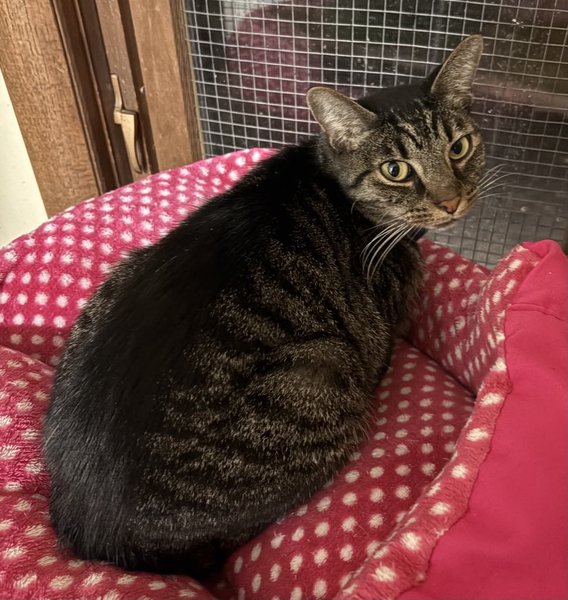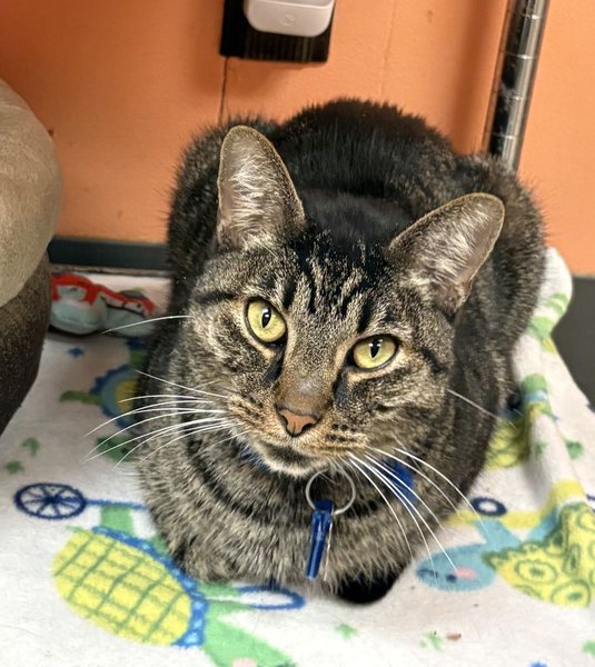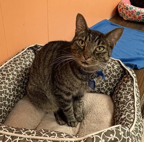 This absolutely strikingly handsome tabby kitty named Ottawa is 1yrs. old and a lover/lap cat! Ottawa was left abandoned outside by previous owners and brought into West Side Cats on 10/22/24 for a chance at finding a family who will love him FOREVER! Ottawa has gorgeous rich colored stripes, soft fur and beautful golden eyes…he has such a sweet personality, you are sure to fall in love! The lady who brought him and said he is very sweet with kids! Ottawa loves to be by you, loves to be petted, and he will crawl right in your lap! Please stop in to West Side Cats and meet this handsome fella! Ottawa is fully vetted and up to date on all vaccinations. Adoption Fee is $80.