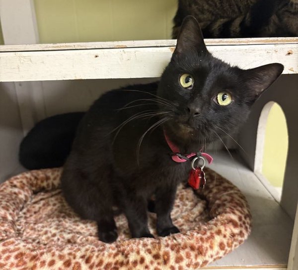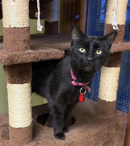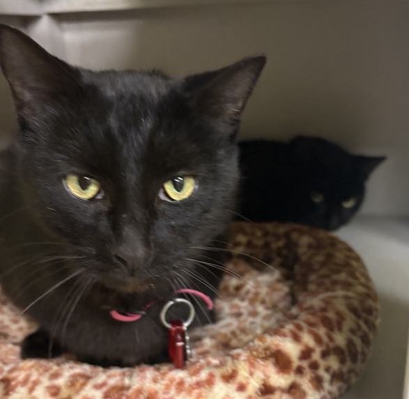 How beautiful are these Bonded Mother/Son black panthers?! Whisper is the momma (DOB 3/1/2021) and Salem is her son (DOB 11/6/23) and they were found abandoned and surrendered over to West Side Cats on 11/3/25 as their previous owner was getting evicted. These sweet babies have silky soft black fur and gorgeous golden eyes! They are both shy, but Salem is the more shy of the two..and so they are bonded for when they get adopted, they can be with eachother to navigate their new life! Whisper will come out when it is quiet and enjoy all of the love and attention you are willing to give! Salem enjoys little gentle pets and you will have to look for them both, as they do hide. Salem and Whisper would love to meet you and find a forever home! Whisper and Salem are fully vetted, spayed/neutered, and up to date on all vaccinations. BONDED Aoption Fee is $150.