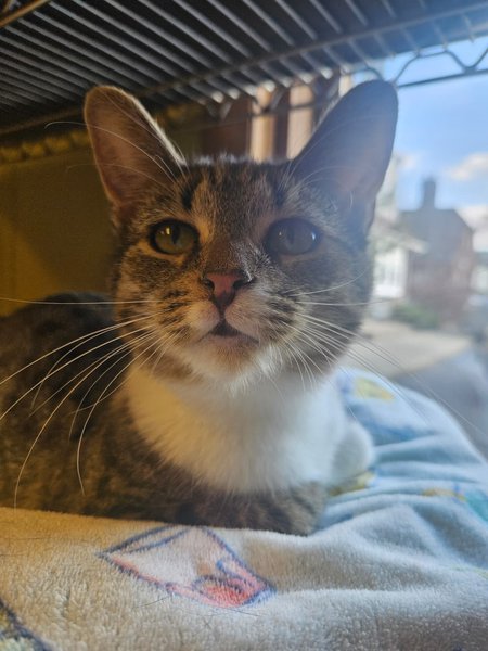 Nariz was rescued by a nice lady who found her crying outside alone in Youngstown. She was brought to WSC on 6/9/25 for a chance at a better life. Her estimated birthdate is 4/1/25. Nariz is a very outgoing kitty - she loves people and is always helping the volunteers clean her room! Please stop by to meet her!