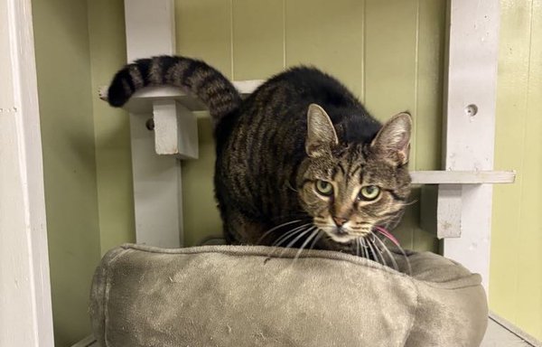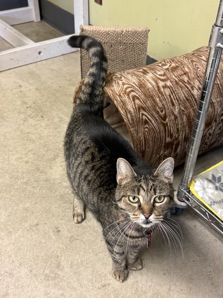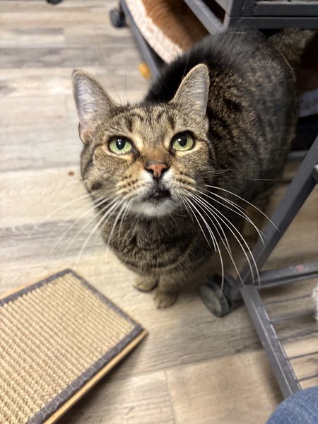 Isn't Missy just the cutest baby with her little mouth shaped like a puckered up kiss?! Missi was surrendered by her elderly owner to Dr. Allen's and brought into West Side Cats in October 2025 for a chance at finding a loving and forever home :) Missy is a beautiful tabby kitty with gorgeous rich colored striped fur and pretty golden eyes! Missy loves to be petted and would love to meet you! She is fully vetted and up to date on all vaccinations. Adooption Fee is $80.