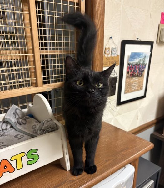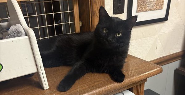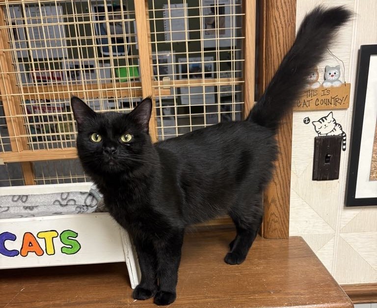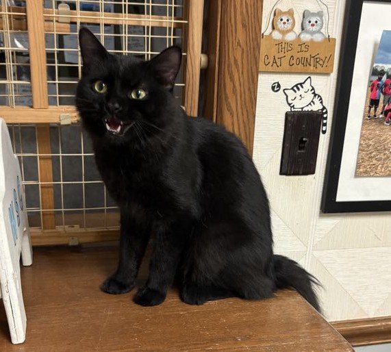 Handsome Zeus! This sweet boy was found as a stray hanging around an Apartment complex in Austintown and brought in to West Side Cats on 10/14/25 for a chance at getting off of the streets and adopted into a loving, safe and forever home! Zeus has gorgeous, soft black fur and beautiful golden eyes! Zeus loves to be petted and loves to be close to you, and he talks! Zeus likes to play with toys and would love to meet you and better yet, become a part of your family! Please stop in and meet him! Zeus is fully vetted and up to date on all vaccinations. Adoption Fee is $80.