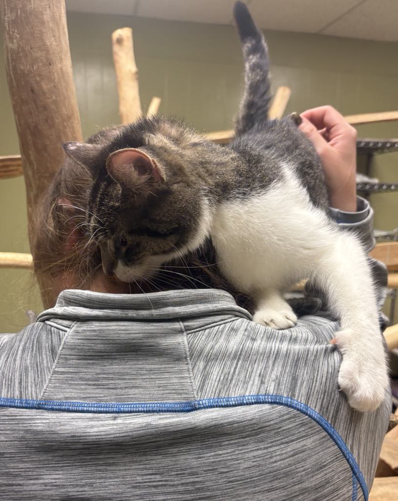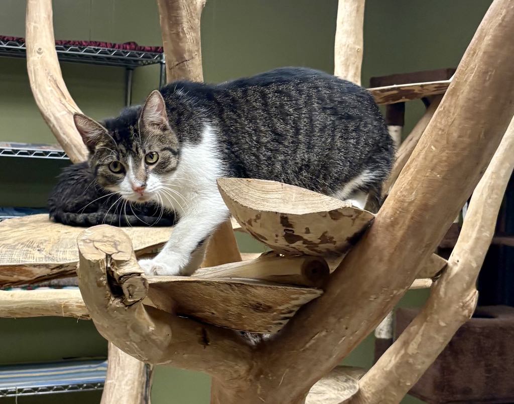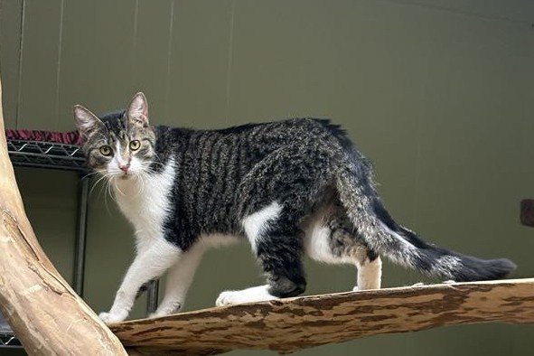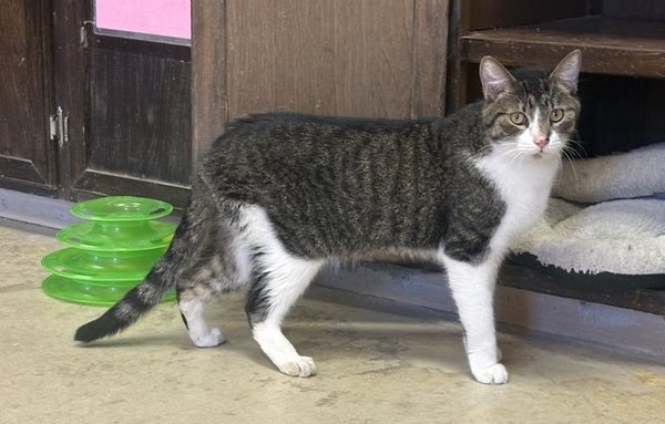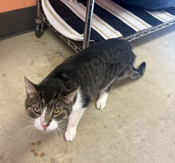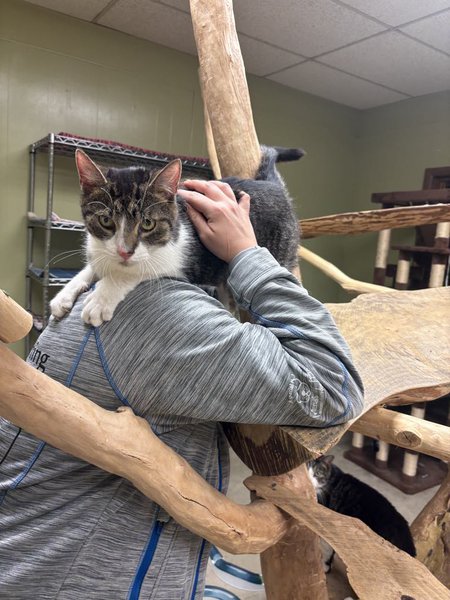 Sweet and handsome tabby/white kitty Carson is a lover! This precious guy was found dumped outside of West Side Cats in October 2025 and he was already neutered but had no chip and because of how loving and sweet he is, he had to have been someone's pet and he was just dumped :( Carson has adorably long legs and he LOVES to give hugs and snuggle!! He has gorgeous soft fur, a cute pink nose, and sparkly golden eyes...he would love to be a part of your family! Please stop in and meet Carson! Carson is fully vetted and up to date on all vaccinations. Adoption Fee is $80.