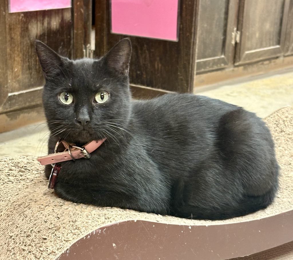 How adorable is mini black panther Firefly?! This beautiful girl was found as a stray who showed up at someone's outside shelter and was being fed with a colonly that someone was caring for since this past Spring and brought in to West Side Cats on 8/20/25 for a chance at finding a family and forever home! Firefly had to have been someone's pet in the past because she is extremely affectionate and loving, and loves people! Firefly has gorgeous golden eyes, silky soft black fur and loves to be petted! Firefly also loves to play with toys and will give you her belly :) Please stop in to meet her! Firefly is fully vetted and up to date on all vaccinations. Adoption Fee is $80.