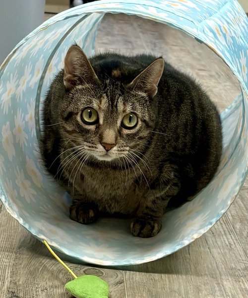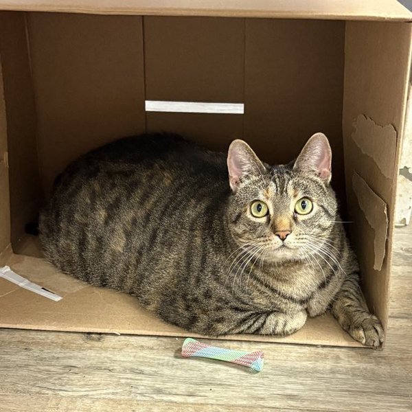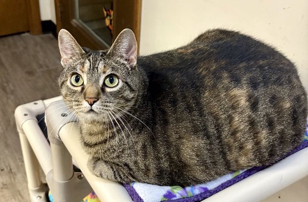 Sweet Connie! This beautiful girl was adopted out 3 years and recently brought to West Side Cats for a chance to be adopted into a forever home, as her owner was not able to care for her. Connie is a BEAUTIFUL tabby/torbie kitty with pretty caramel colored markings and the cutest face! She LOVES to be petted and be close to you! Once she is comfortable with you, she will roll over and give you her belly :) Previous owner stated that she gets along with other kitties and does well with older, respectful children. Connie does not like dogs. Please stop in and meet this beautiful girl! She deserves to be loved and cared for by a family who will not let her down! Connie is fully vetted and up to date on all vaccinations. Adoption Fee is $80.