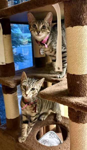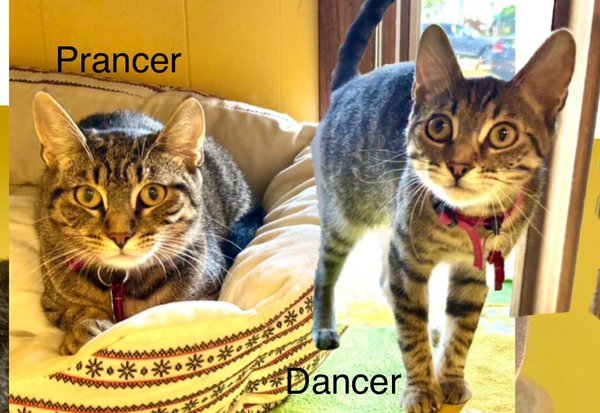 How sweet are BONDED sisters Prancer and Dancer?! These super cute tabby kittens were born on Christmas Day (DOB: 12/25/24)! Prancer and Dancer were found as strays with their mom and 4 other sibling kittens and they were brought to West Side Cats on 2/27/25 for a chance at finding a loving and forever home :) These beautiful tabby kittens are SO loving, friendly, sweet and affectionate! Prancer and Dancer LOVE to play and love to be petted! Prancer is a little more on the shy side as far as coming out and running up to you...but BOTH of these girls are SO very sweet and soft and gentle...and Prancer gives kisses!! They are so ready to be a part of a family! Please stop in and meet Prancer and Dancer...they are fully vetted and up to date on all vaccinations. BONDED Adoption Fee is $230.