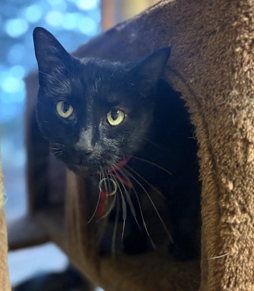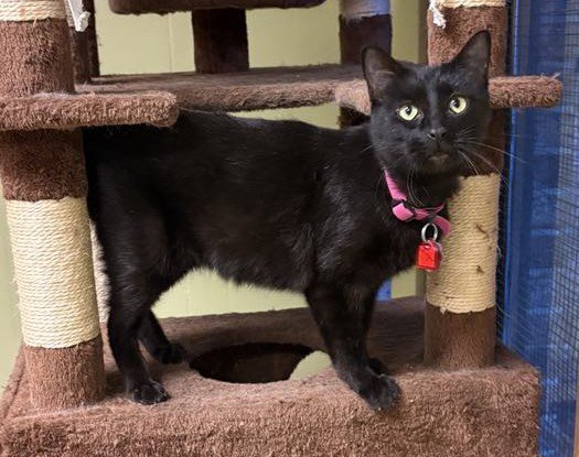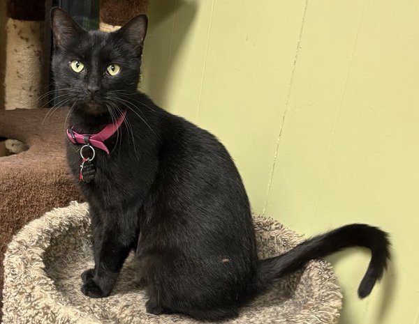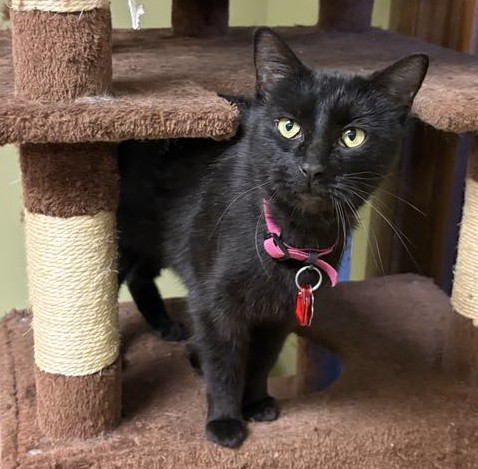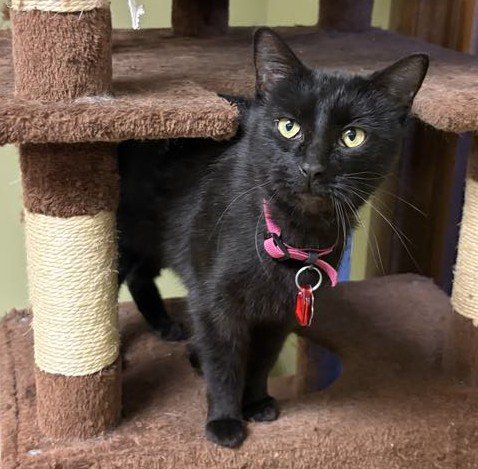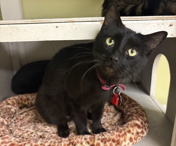 How gorgeous is mini black panther Whisper?! Whisper was found with her son Salem (who did not adjust well to shelter life and is currently in a foster home) abandoned and surrendered over to West Side Cats on 11/3/25 as their previous owner was getting evicted. Whisper has silky soft black fur and gorgeous golden eyes! Whisper is a little shy but LOVES attention, and she talks! She loves to be petted and loves to be close to you! Whisper enjoys all of the love and attention you are willing to give! Whisper would love to meet you and find a forever home! She is fully vetted, spayed, and up to date on all vaccinations. Adoption Fee is $80.