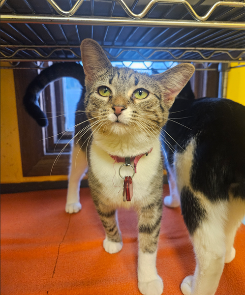 Nariz was rescued by a nice lady who found her crying outside alone in Youngstown. She was brought to WSC on 6/9/25 for a chance at a better life. Her estimated birthdate is 4/1/25. Nariz is a very outgoing kitty - she loves people and is always helping the volunteers clean her room! Please stop by to meet her!