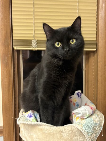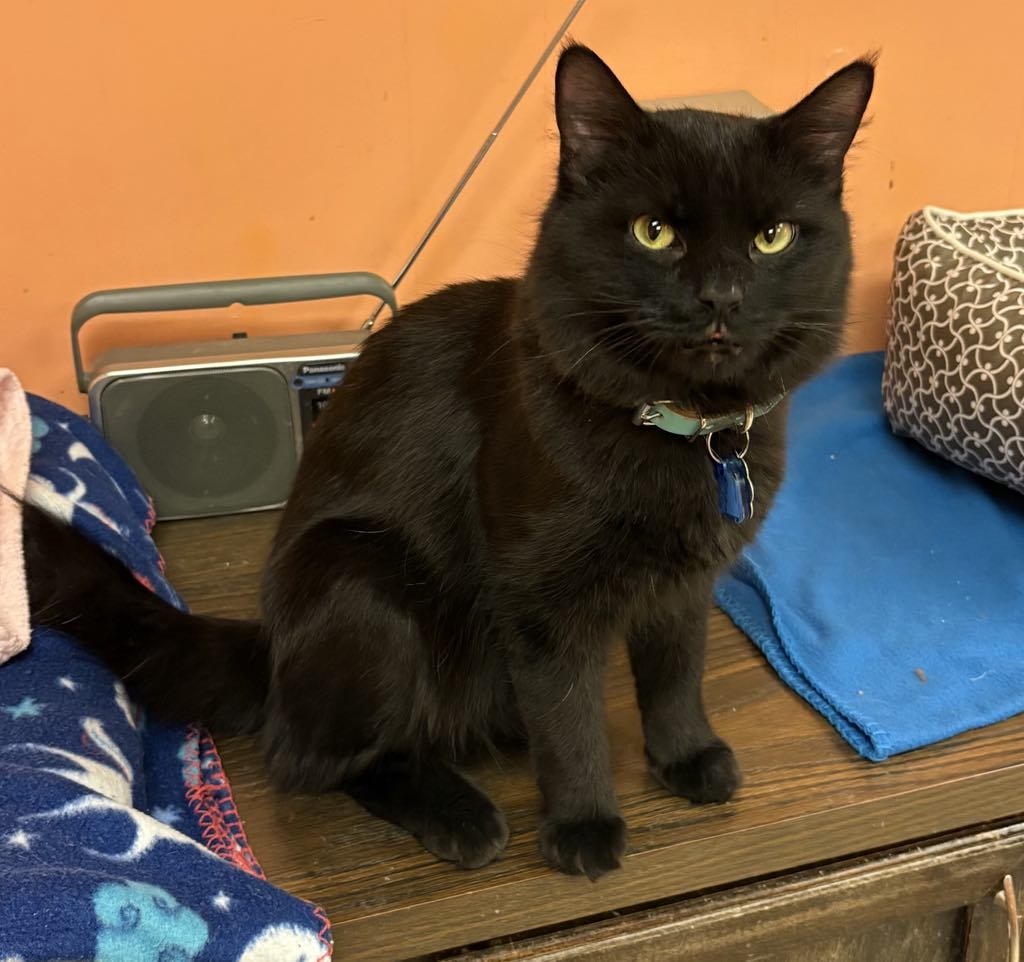 Handsome Zeus! This sweet boy was found as a stray hanging around an Apartment complex in Austintown and brought in to West Side Cats on 10/14/25 for a chance at getting off of the streets and adopted into a loving, safe and forever home! Zeus has gorgeous, soft black fur and beautiful golden eyes! Zeus loves to be petted and loves to be close to you, and he talks! Zeus likes to play with toys and would love to meet you and better yet, become a part of your family! Please stop in and meet him! Zeus is fully vetted and up to date on all vaccinations. Adoption Fee is $80.
