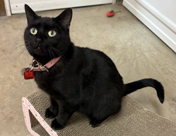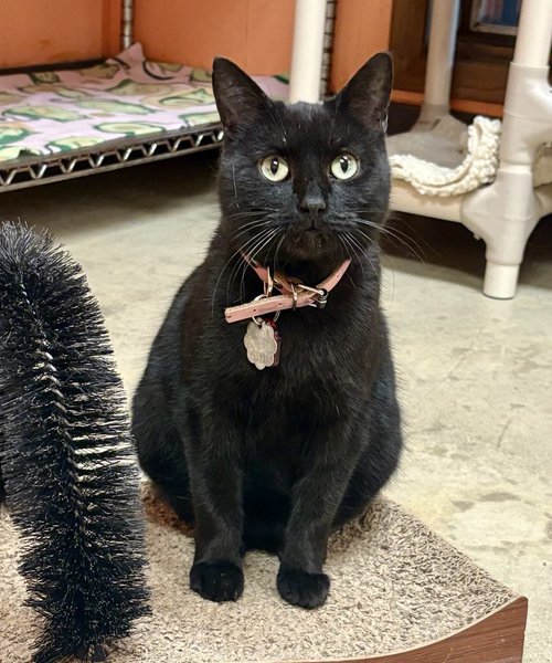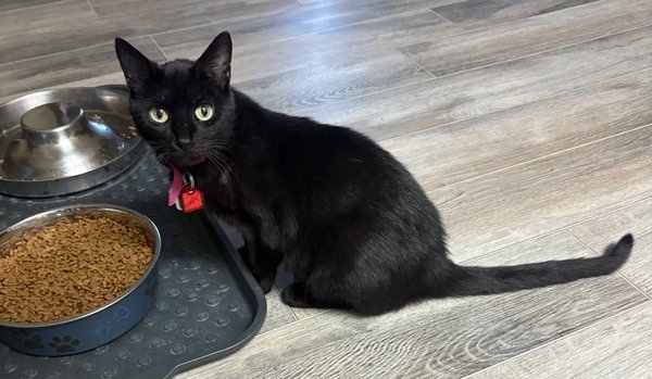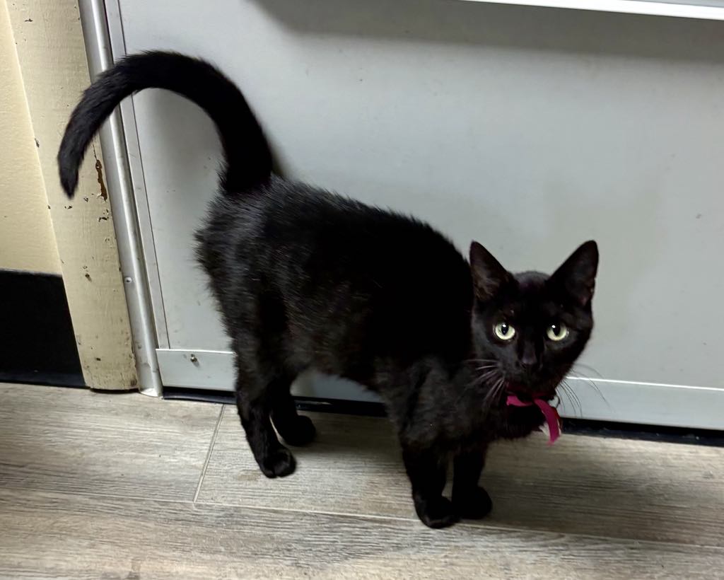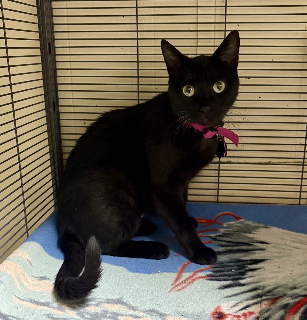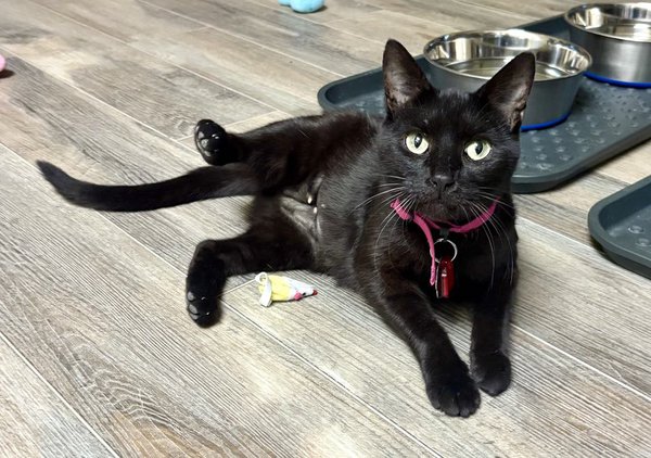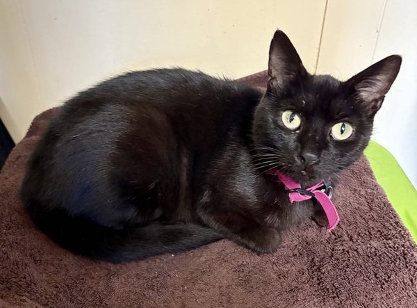 How adorable is mini black panther Firefly?! This beautiful girl was found as a stray who showed up at someone's outside shelter and was being fed with a colonly that someone was caring for since this past Spring and brought in to West Side Cats on 8/20/25 for a chance at finding a family and forever home! Firefly had to have been someone's pet in the past because she is extremely affectionate and loving, and loves people! Firefly has gorgeous golden eyes, silky soft black fur and loves to be petted! Firefly also loves to play with toys and will give you her belly :) Please stop in to meet her! Firefly is fully vetted and up to date on all vaccinations. Adoption Fee is $80.