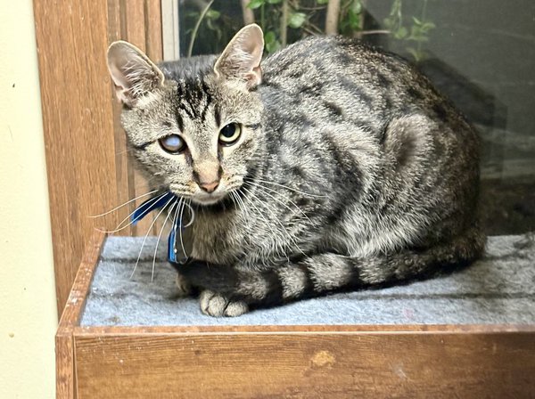 How gorgeous is tiger striped kitty Benito? This handsome boy is very shy...he was found as a stray along and brought in to West Side Cats on 8/20/25 for a chance at finding a loving and safe forever home. The lady who brought them in says that they were probably dumped dropped off and she feared for their lives because her neighborhood has pitbulls tied up that get loose all the time. Benito has beautiful rich colored striped fur and he has the sweetest expression on his face! Benito's right eye has a corneal scar on it that he was probably born with and does not affect him getting around at all! Benito is on the shy side and hides a lot so you will have to look for him :) Please stop in and meet him! Benito is fully vetted and up to date on all vaccinations. Adoption Fee is $120.