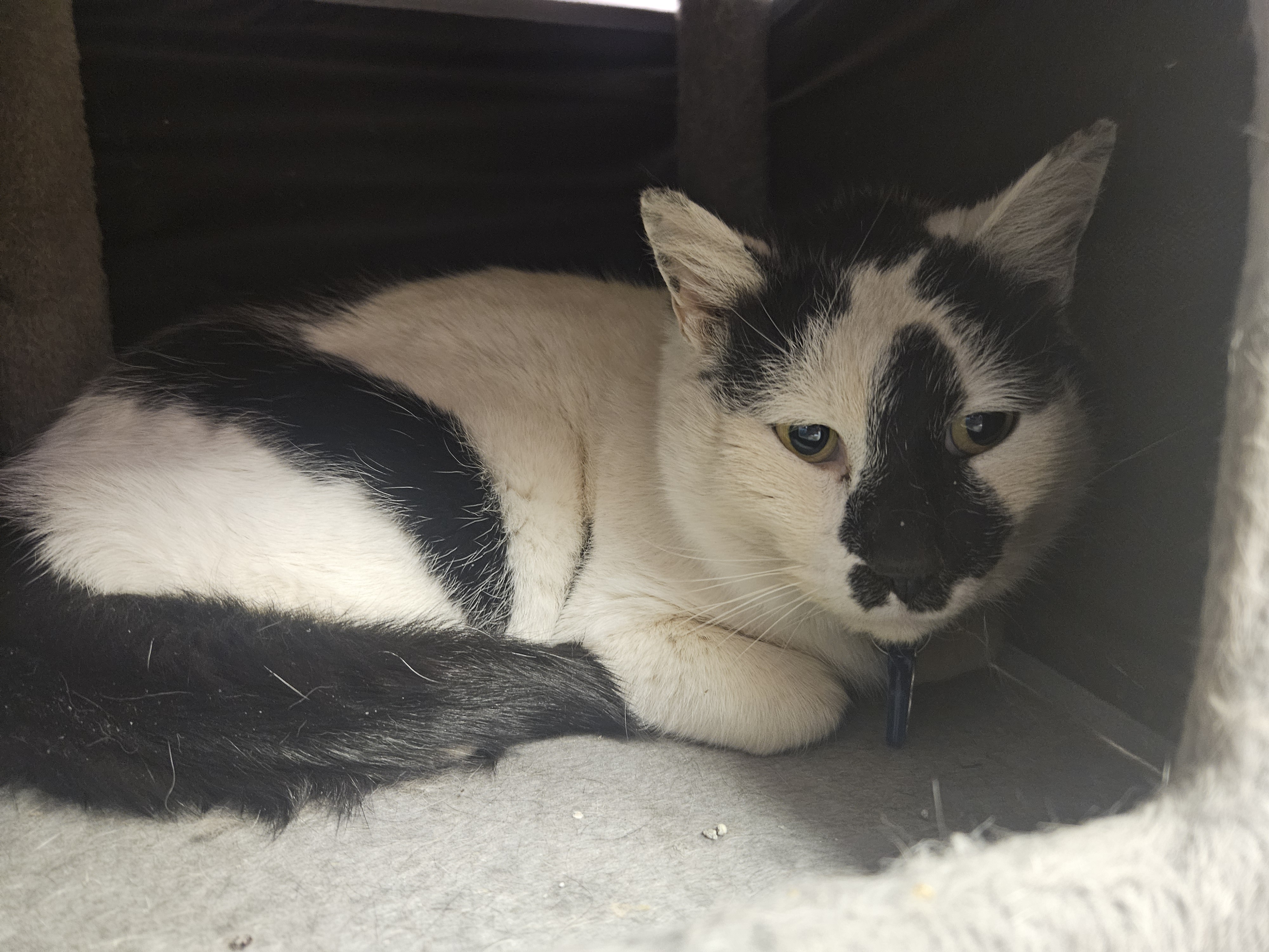Checkers was surrendered to WSC on 1/23/26 after being found as a stray near Shirley Rd. He is a sweet, loving boy with the coolest black & white markings! He is estimated to be 2 years old.